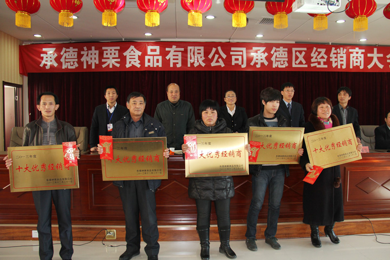 2014年1月10日,“承德神栗食品有限公司承德區(qū)經(jīng)銷商大會”在神栗食品有限公司召開,公司總經(jīng)理趙天麗、黨委書記王葆賦、副總經(jīng)理查 焯、袁瑞龍,銷售總監(jiān)于海龍、承德區(qū)域經(jīng)理趙海龍、承德地區(qū)全體銷售人員及承德區(qū)經(jīng)銷商參加了本次會議。