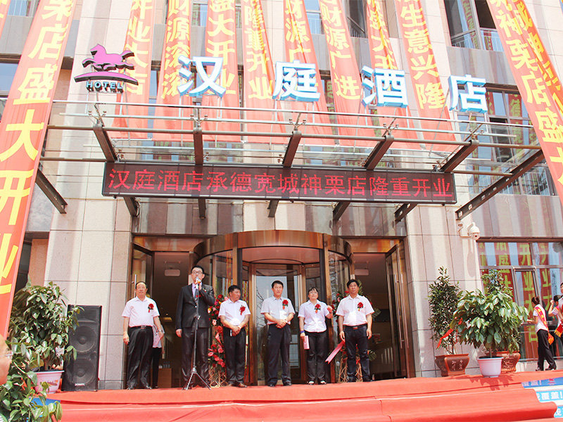 2015年5月25日,漢庭酒店承德寬城神栗店盛大開業(yè)!承德神栗食品有限公司董事長陶清泉、總經(jīng)理趙天麗、漢庭酒店寬城神栗店店長吳志峰、承德神栗食品有限公司副總經(jīng)理石明星、工會主席劉井書出席了開業(yè)典禮。